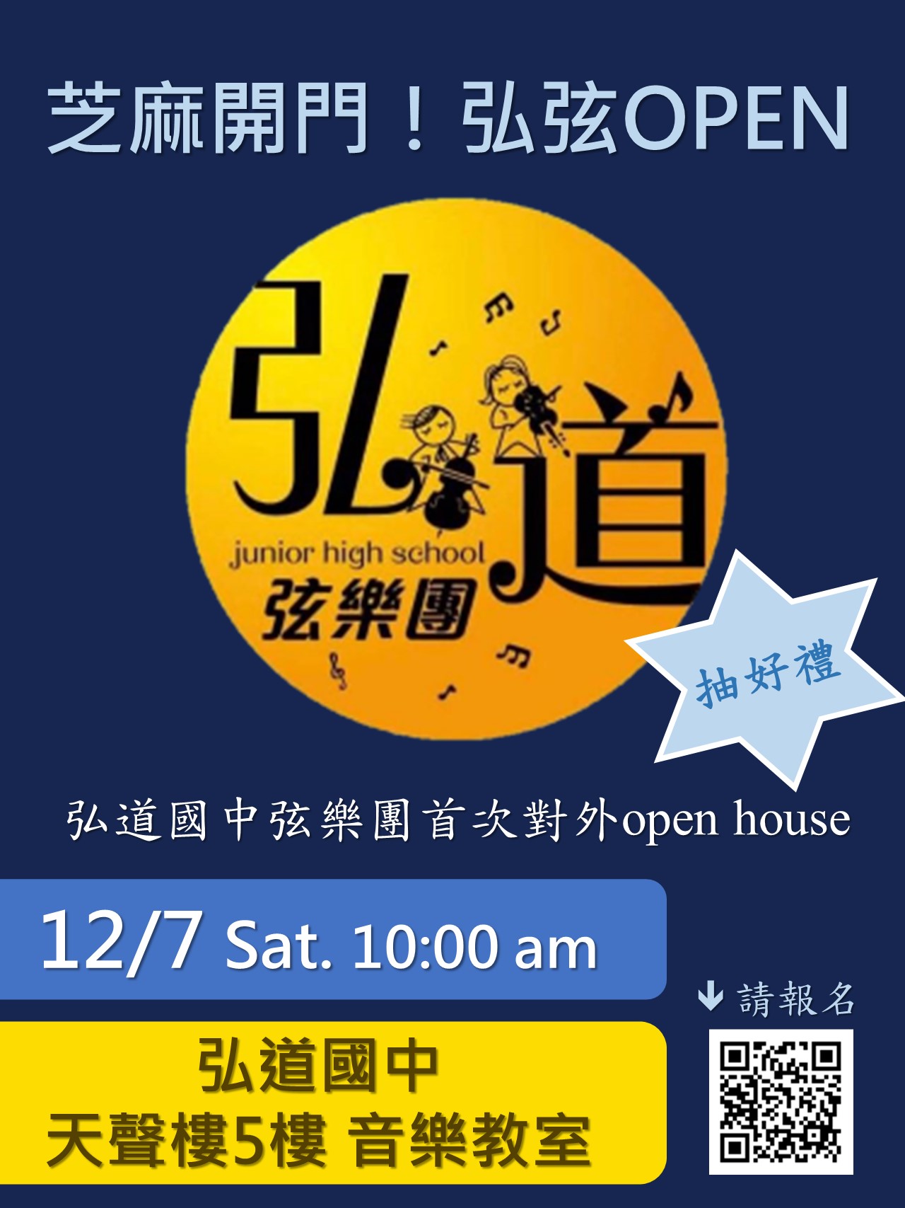 (*)地點:弘道國中天聲樓五樓 音樂教室(公園路21號)