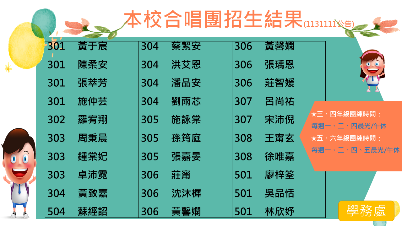 【招生結果】本校合唱團甄選結果,恭喜錄取的學生
