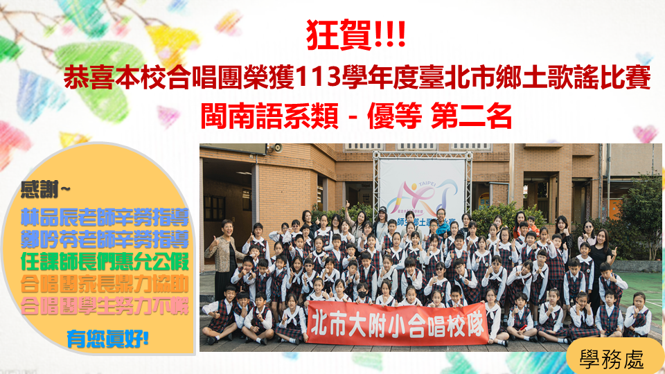 狂賀!!! 恭喜本校合唱團榮獲臺北市113學年度師生鄉土歌謠比賽 閩南語系類-優等 第二名(附含比賽實況連結)