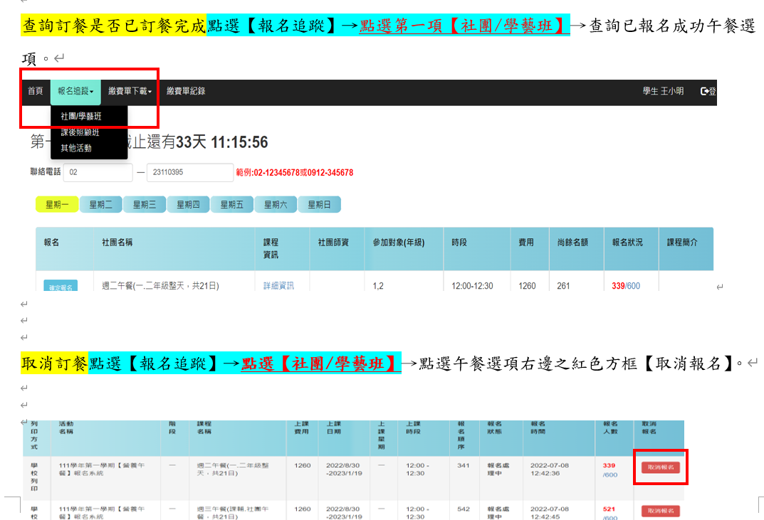 *檢附【訂餐查詢取消步驟說明】如附件。