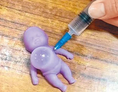 此玩具為矽膠材質玩偶及附有針頭(筒)之成套商品, 依國家標准CNS4797-3「玩具安全-第3部:機械性及物理性」第4.7節規定,該商品依第5.9節(尖端試驗)測試時,不得含有危害尖端。如附有針頭(筒)者,即不符合前述規定,不得於市場銷售,亦不得朝人體使用。