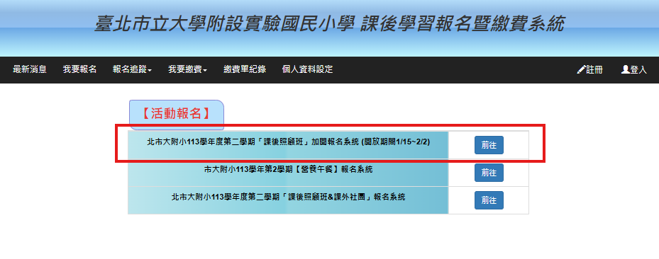 1. 此為加開報名系統,開放時間1/15~2/3,若家長忘記報名課輔可點入加選,開學後待學校製作繳費單後再行繳費(酷課雲-校園繳費系統) 。