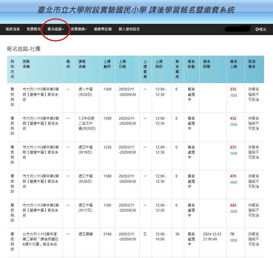 報名完,別忘了到「報名追蹤>社團/學藝班」頁面確認~