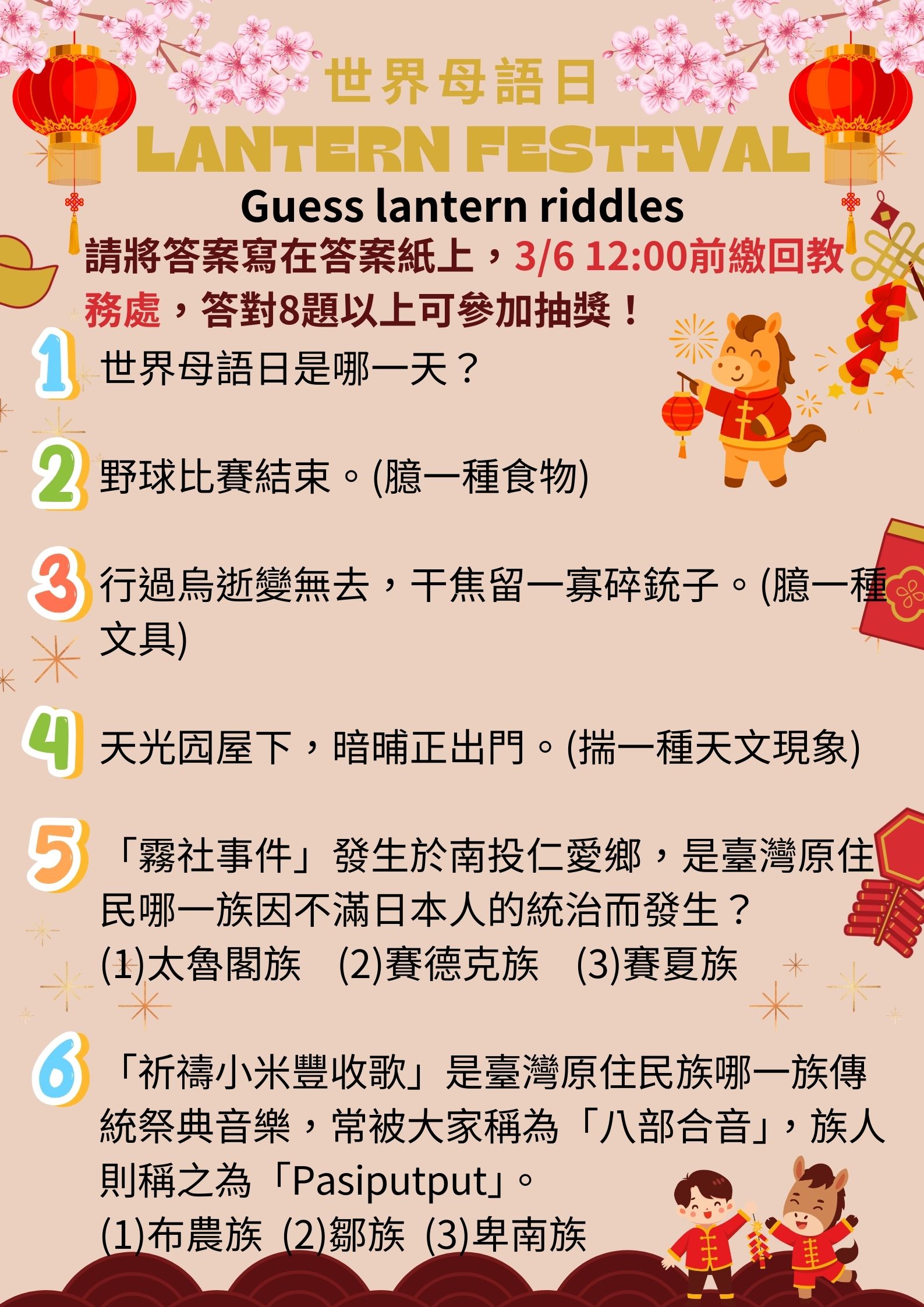 3/6 12:00前將答案紙繳交至教務處,