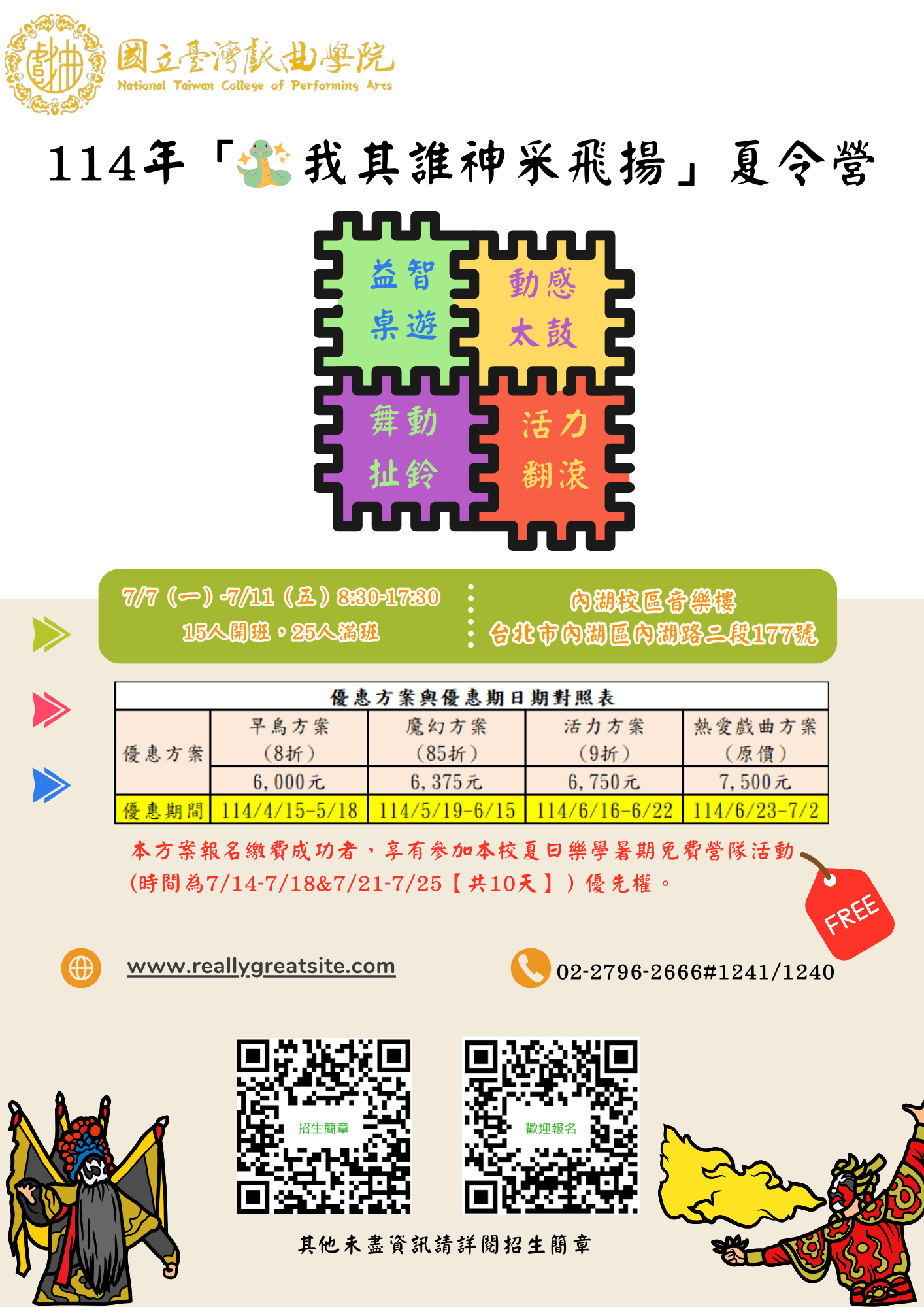 (二)活動地點:國立臺灣戲曲學院內湖校區(台北市內湖區 內湖路二段177號)。