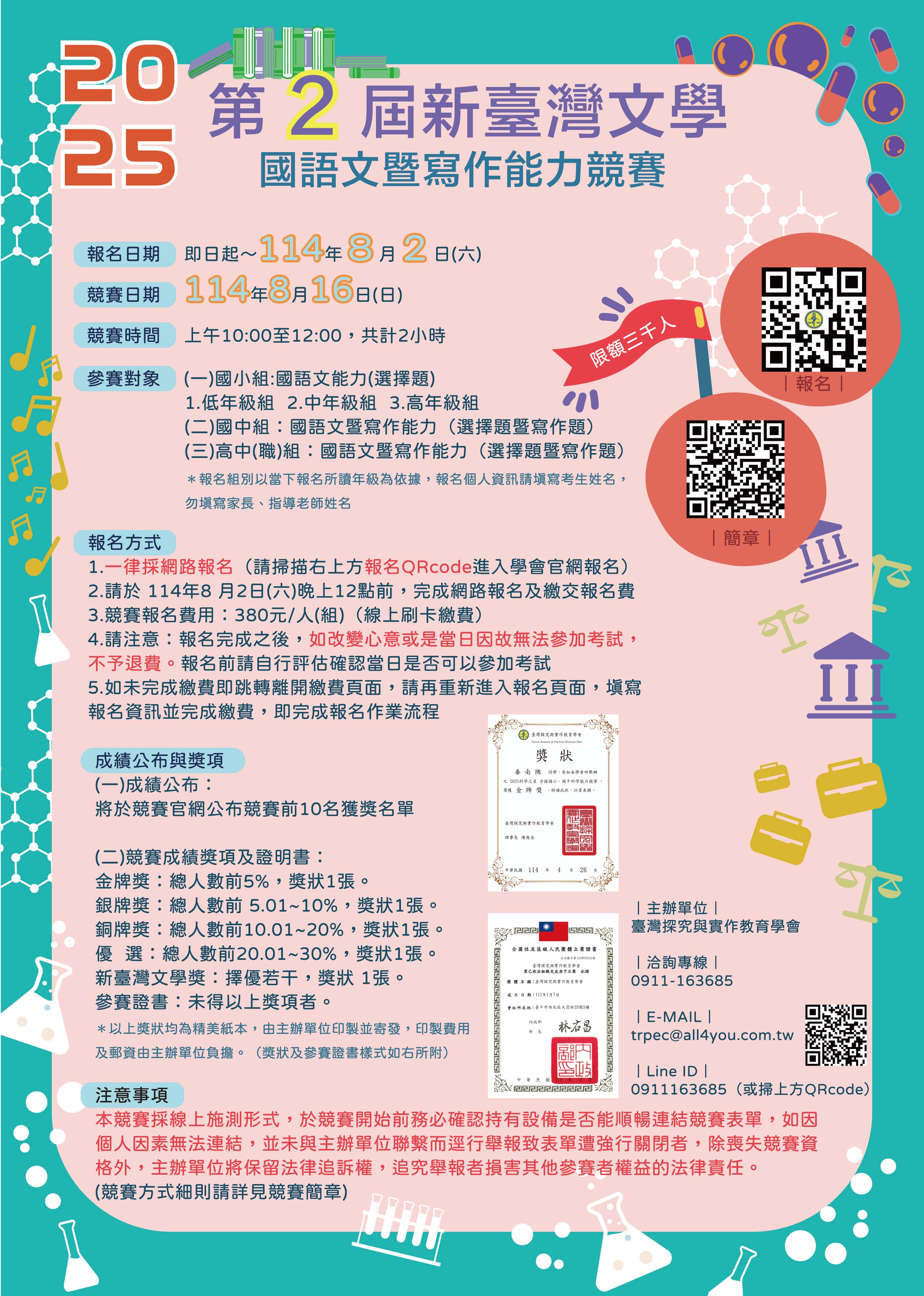 四、競賽時間:2025年8月16日(星期六)上午10:00~12:00