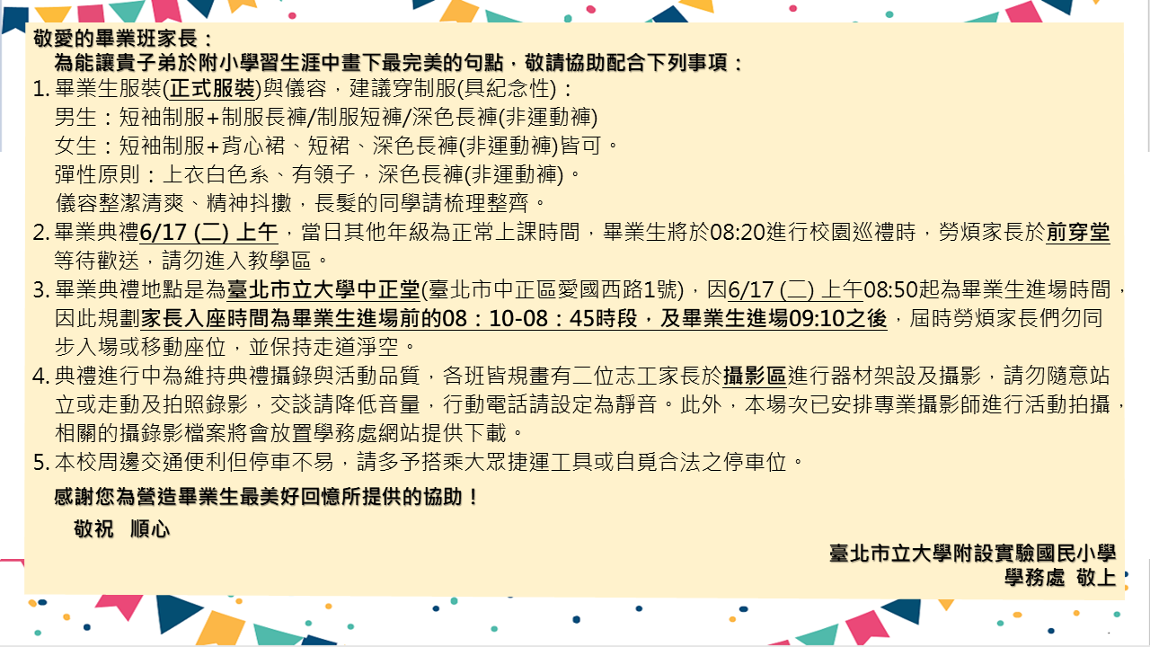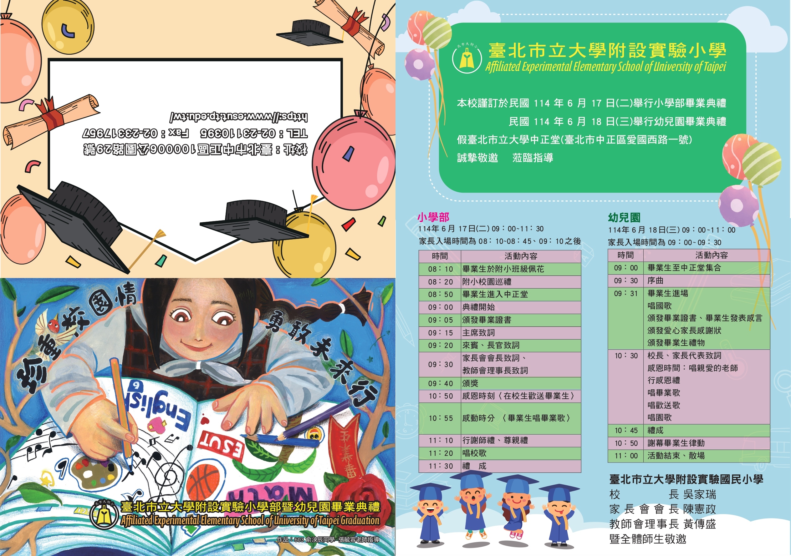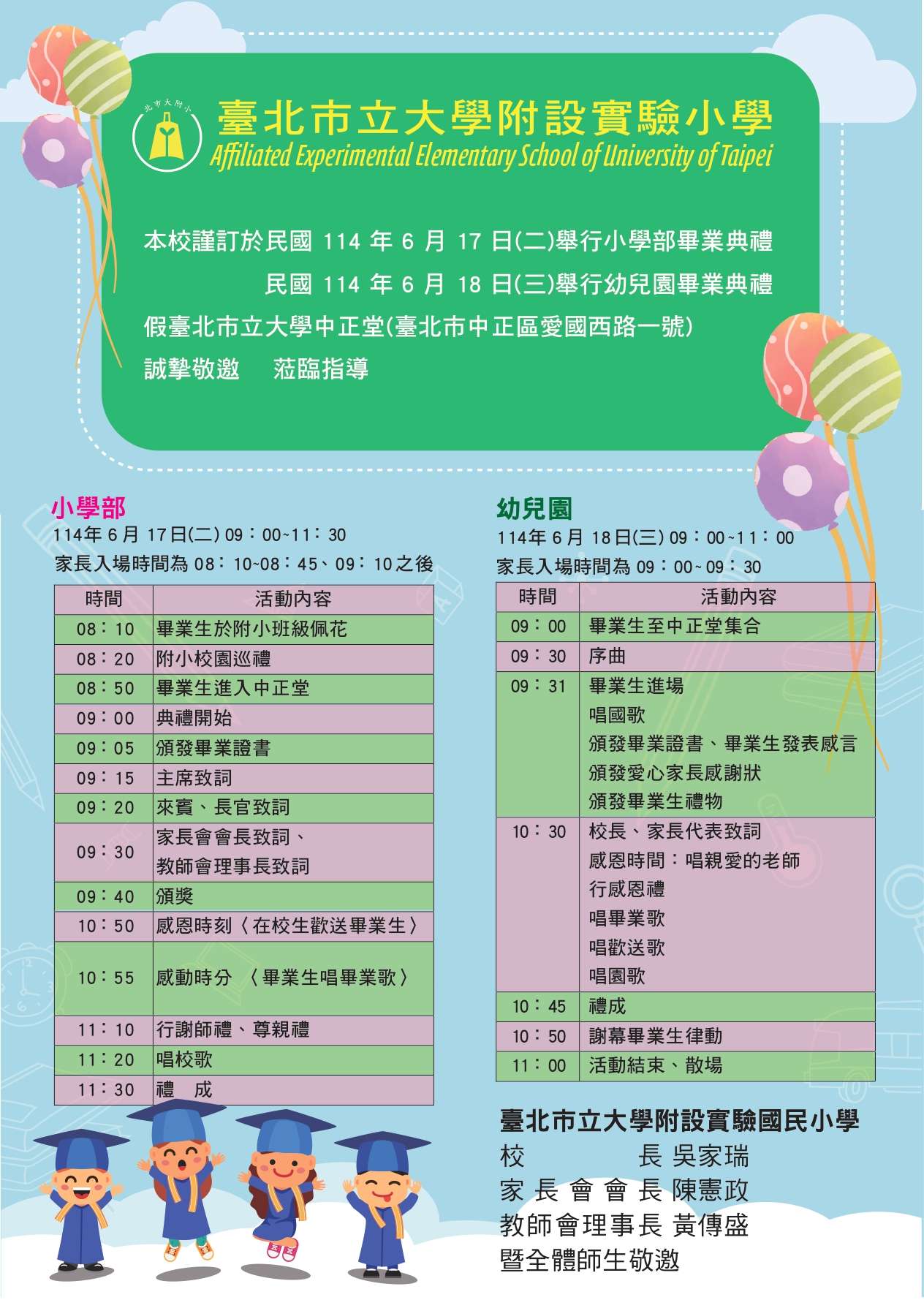 【畢業典禮】敬邀蒞臨北市大附小113學年度小學部暨幼兒園畢業典禮