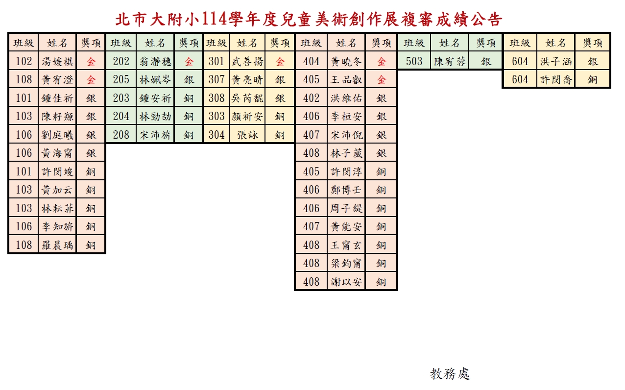 主旨:北市大附小114學年度兒童美術創作展複審成績公告