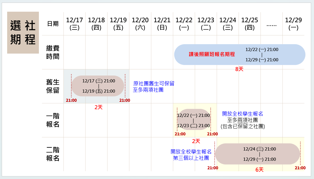 ⭐課晚輔班、社團照顧班無舊生保留,請家長上報名系統加選下學期課程