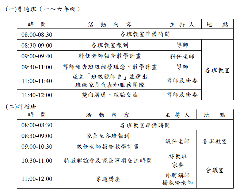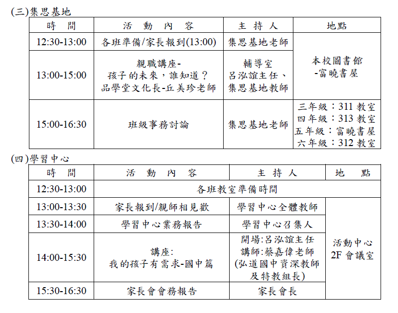 3/7(六) 學校日當天各班流程與時程: