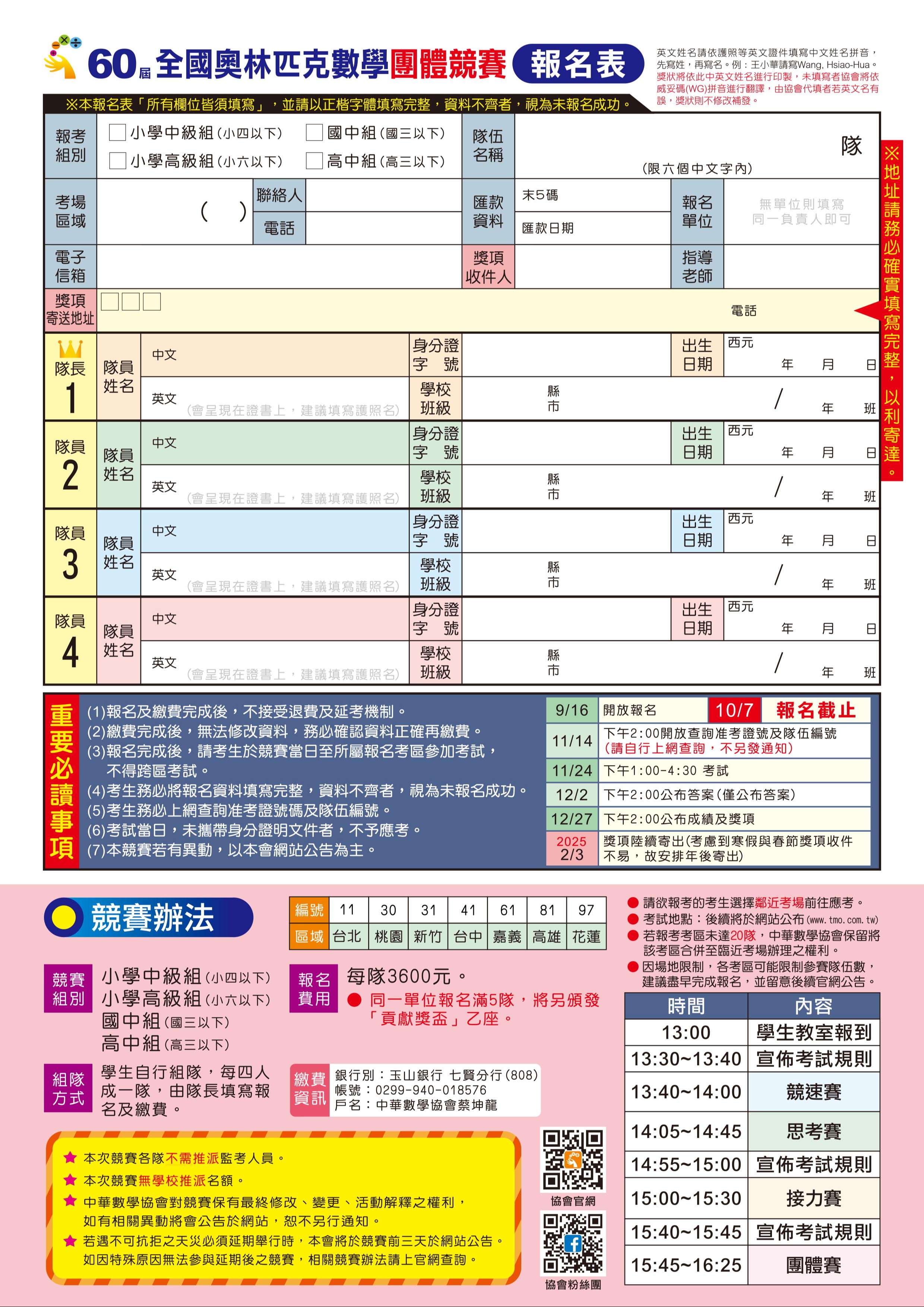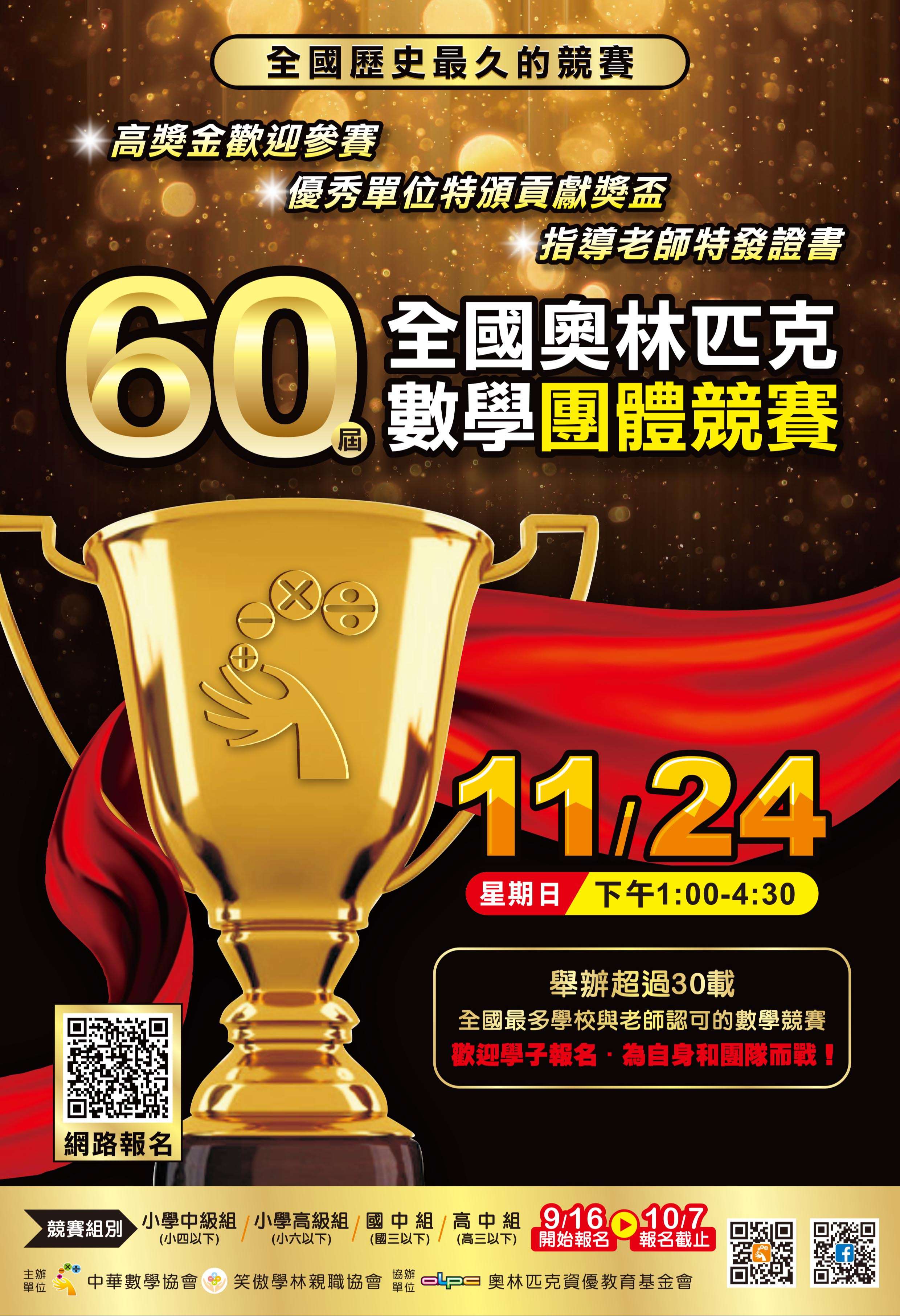 檢附「第60屆全國奧林匹克數學團體競賽」競賽活動相關 簡章