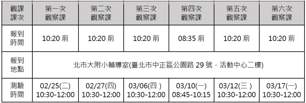 3.複選(二)觀察測驗時間請家長自行留存,並提醒孩子準時參與,感謝您的協助及配合。